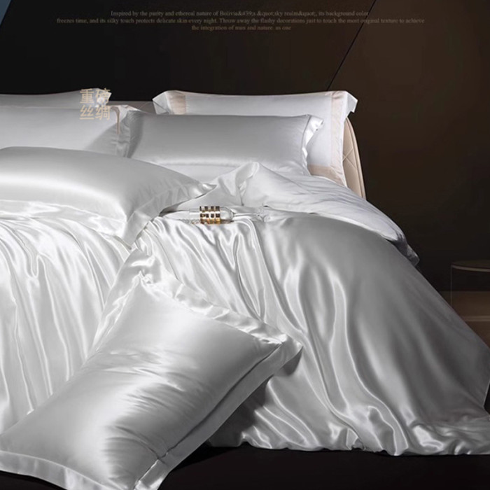 高檔重磅貢緞絲綢被套單件水洗真絲滑裸睡冰絲天絲親膚被罩三件套