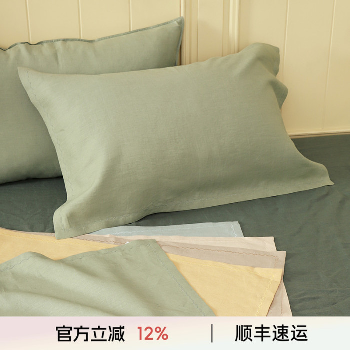 陽春小鎮亞麻枕套枕巾老粗布純色亞麻枕巾吸溼透氣舒適亞麻枕套