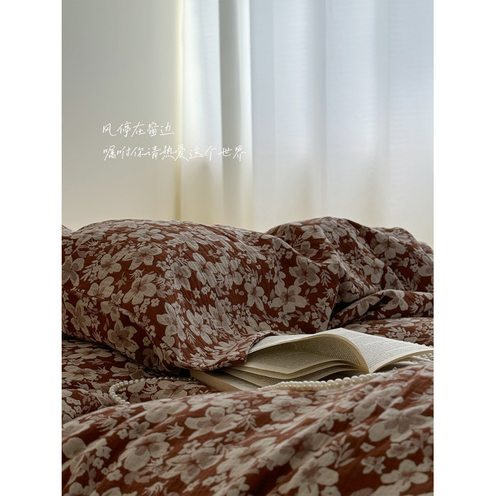 復古田園風全棉色織提花雙層紗純棉紗布被套150x200x230c宿舍被罩