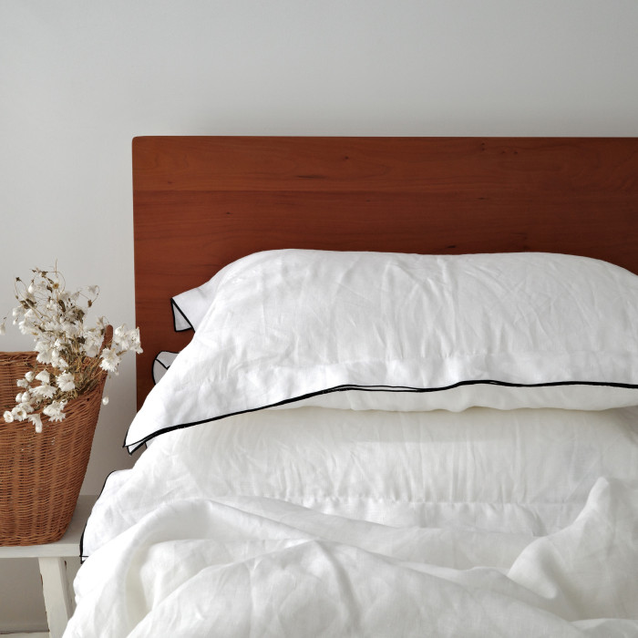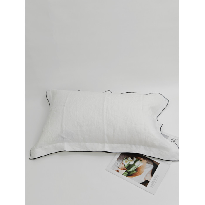 法國純亞麻面料白色密拷邊飛邊單人枕套不含芯