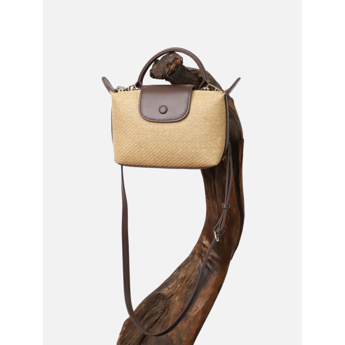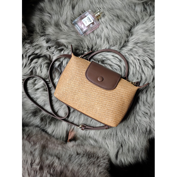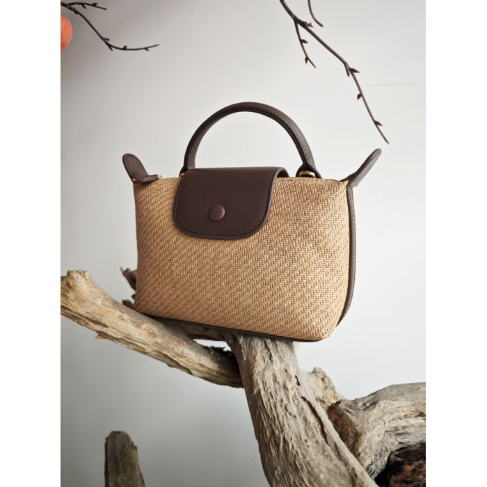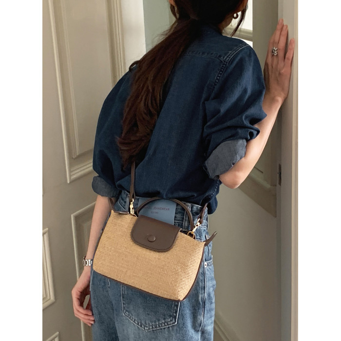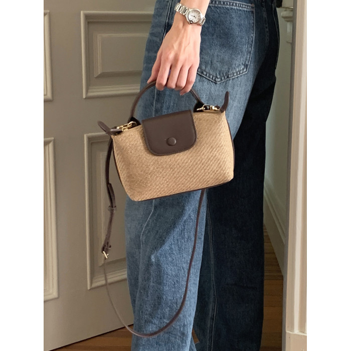 Sweetbox紙草拼牛皮手提包迷你時尚新款小衆草編單肩斜後背包女包潮