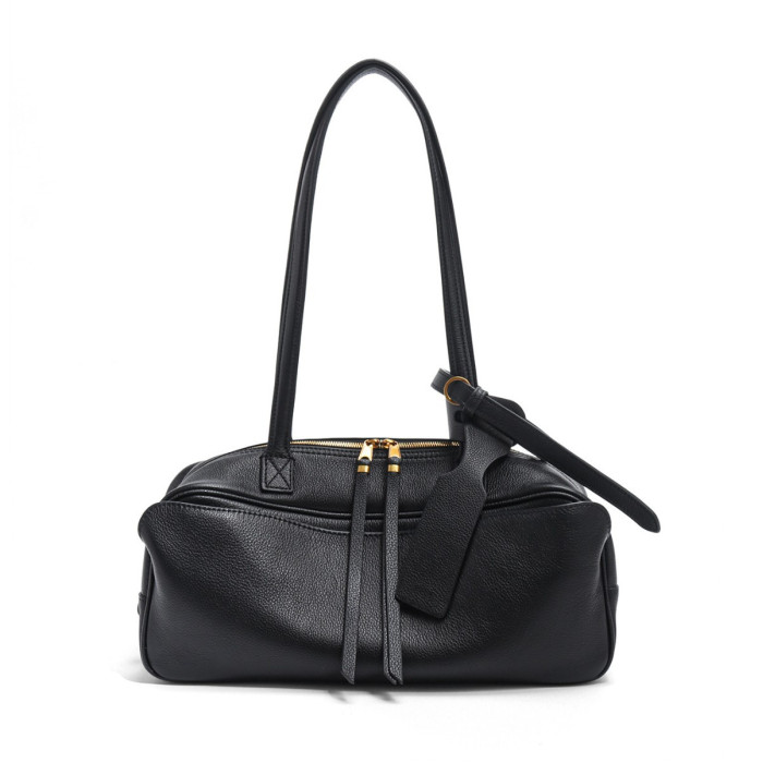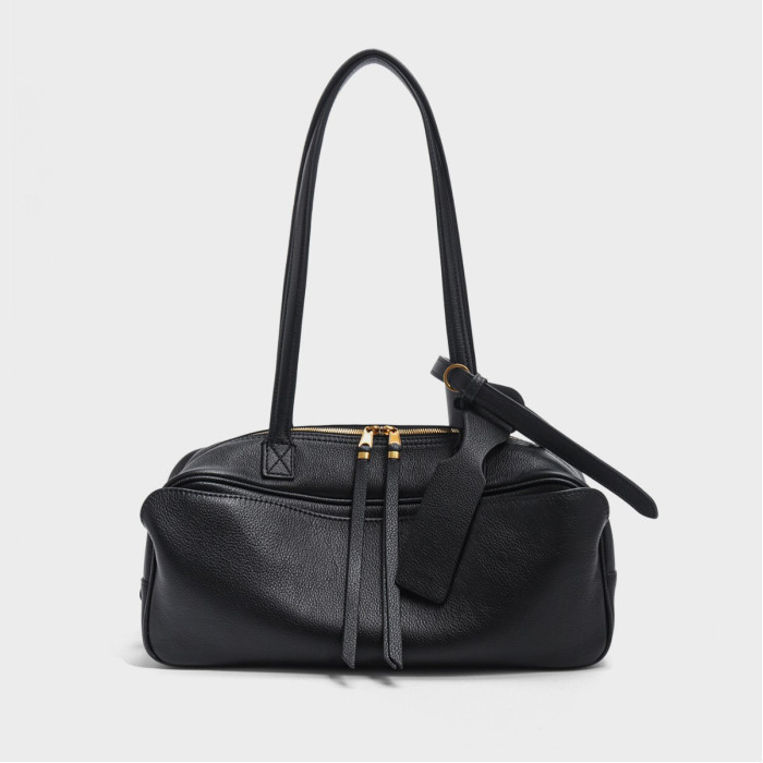 B家2025春夏款carriebowling保齡球新款女包簡約頭層牛皮波士頓