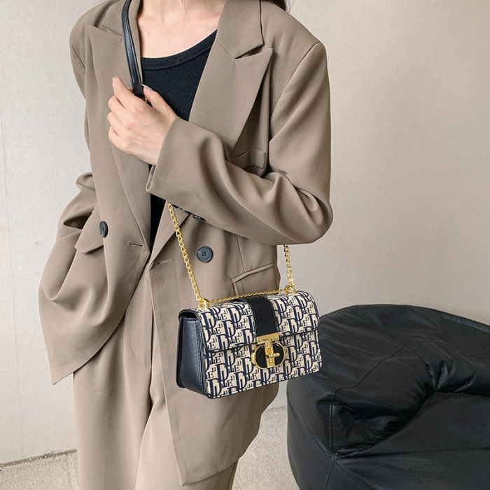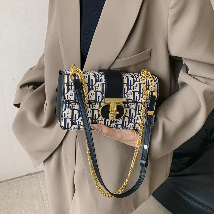 高級質感女包包2023新款法式印花鏈條斜後背包百搭單肩包復古