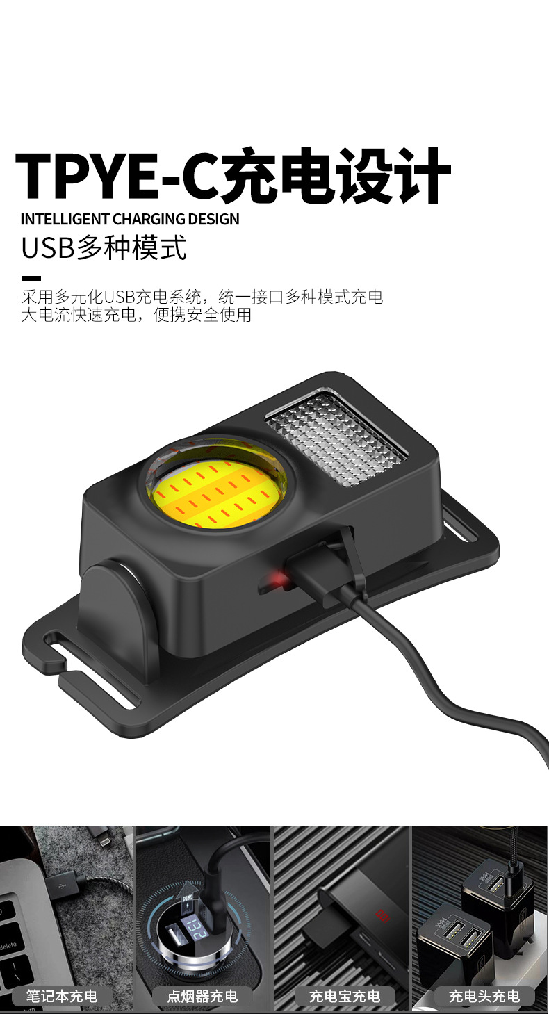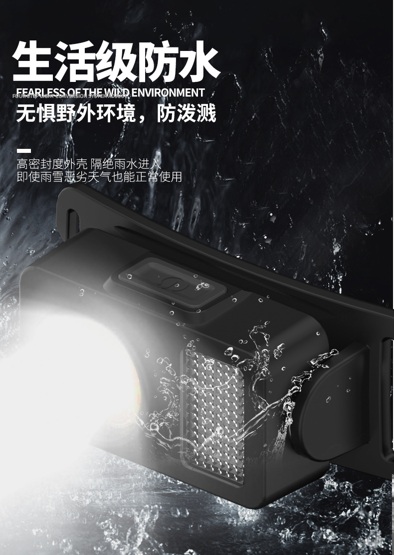 新款強光頭燈COB迷你多功能釣魚燈 戶外可攜式LE紅光警示頭戴式電筒