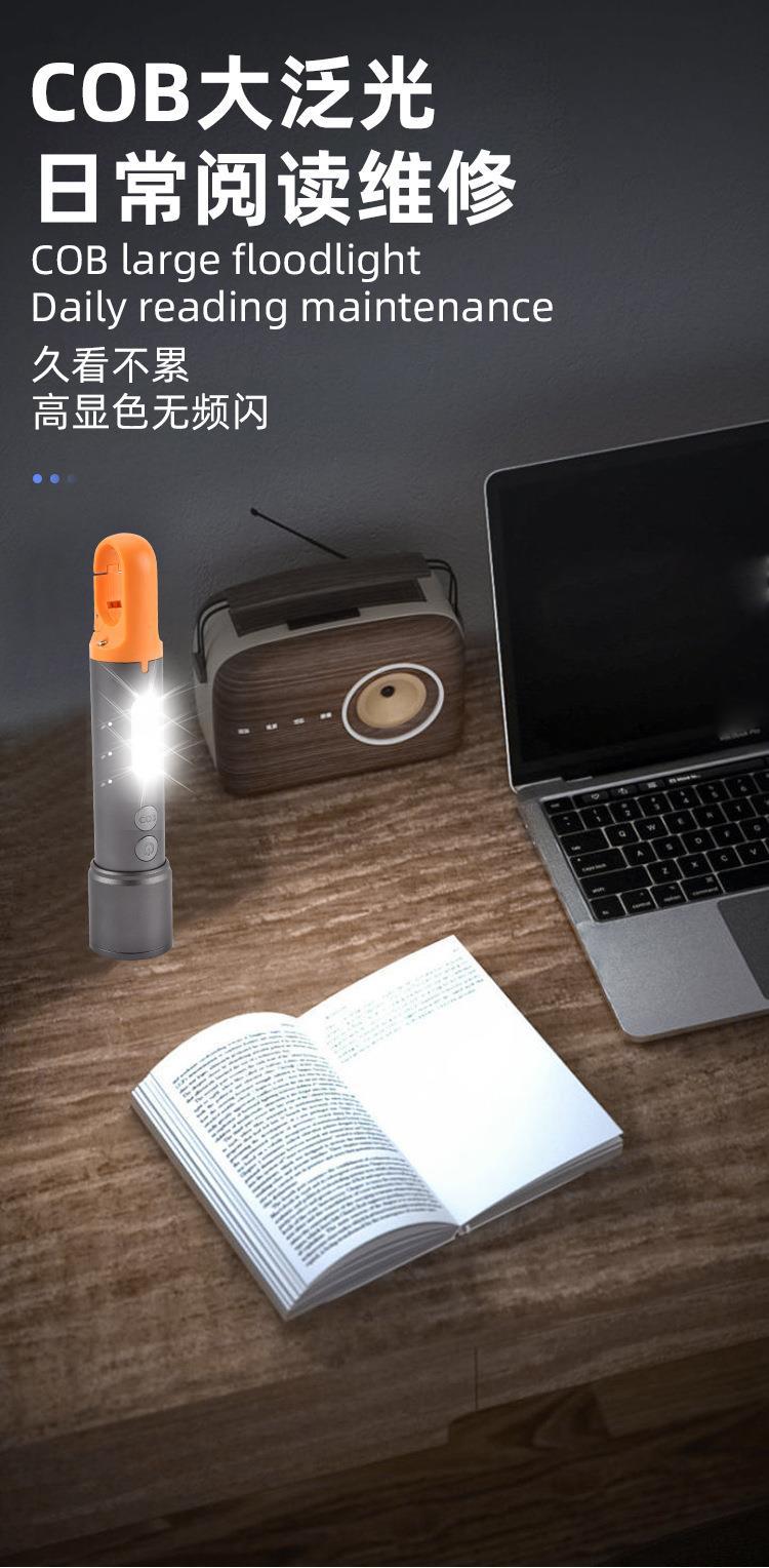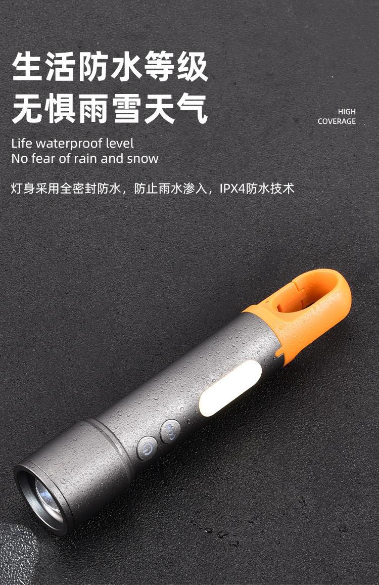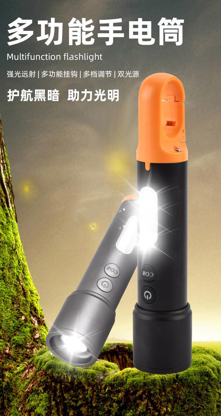 LED戶外強光多功能Type-C充電鋁合金尾部掛鉤手電筒可攜式
