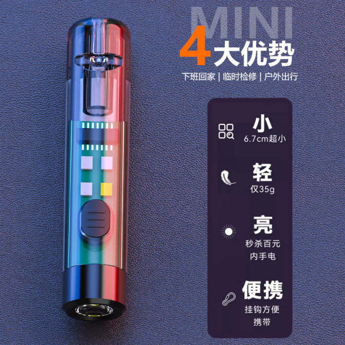 新款LED迷你多功能鑰匙扣燈 Type-C快充應急口哨可攜式戶外手電筒