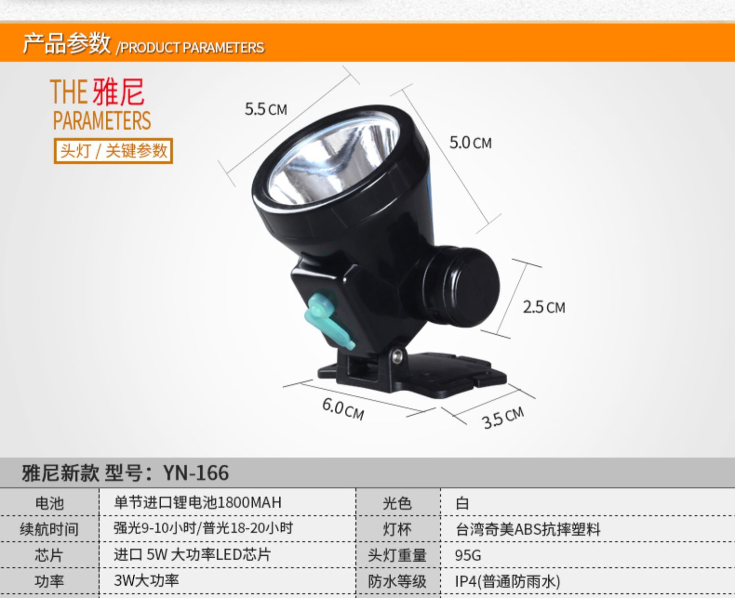 雅尼166頭燈強光充電遠射LED夜釣家用戶外登山頭戴手電筒小礦燈