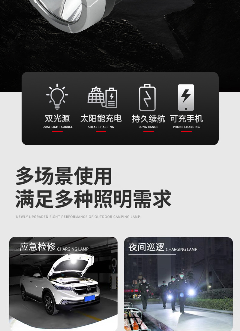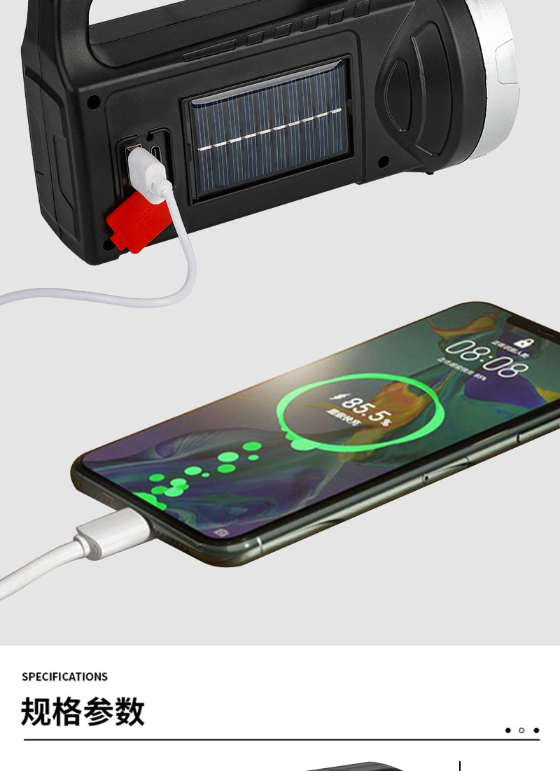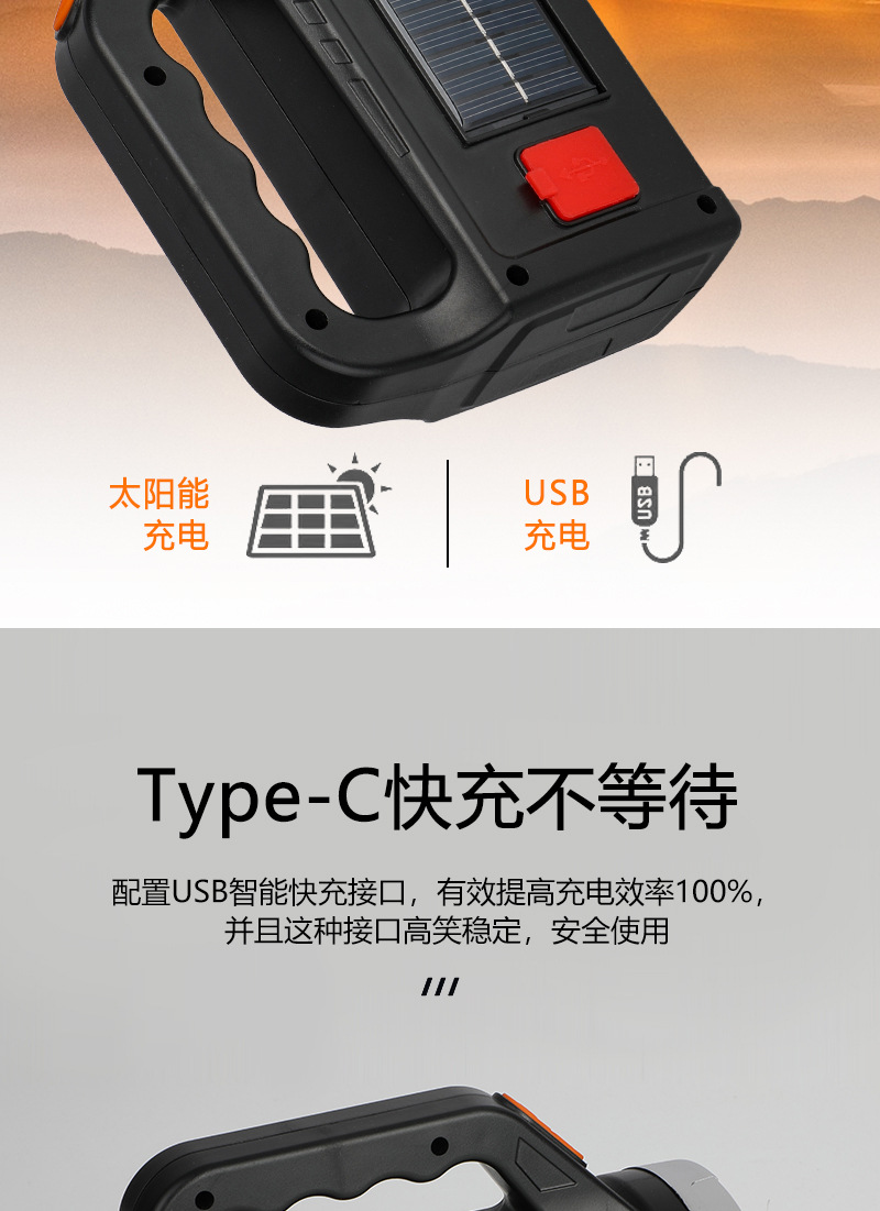 手電筒強光充電戶外超亮遠射手提探照燈超長續航太陽能家用大容量