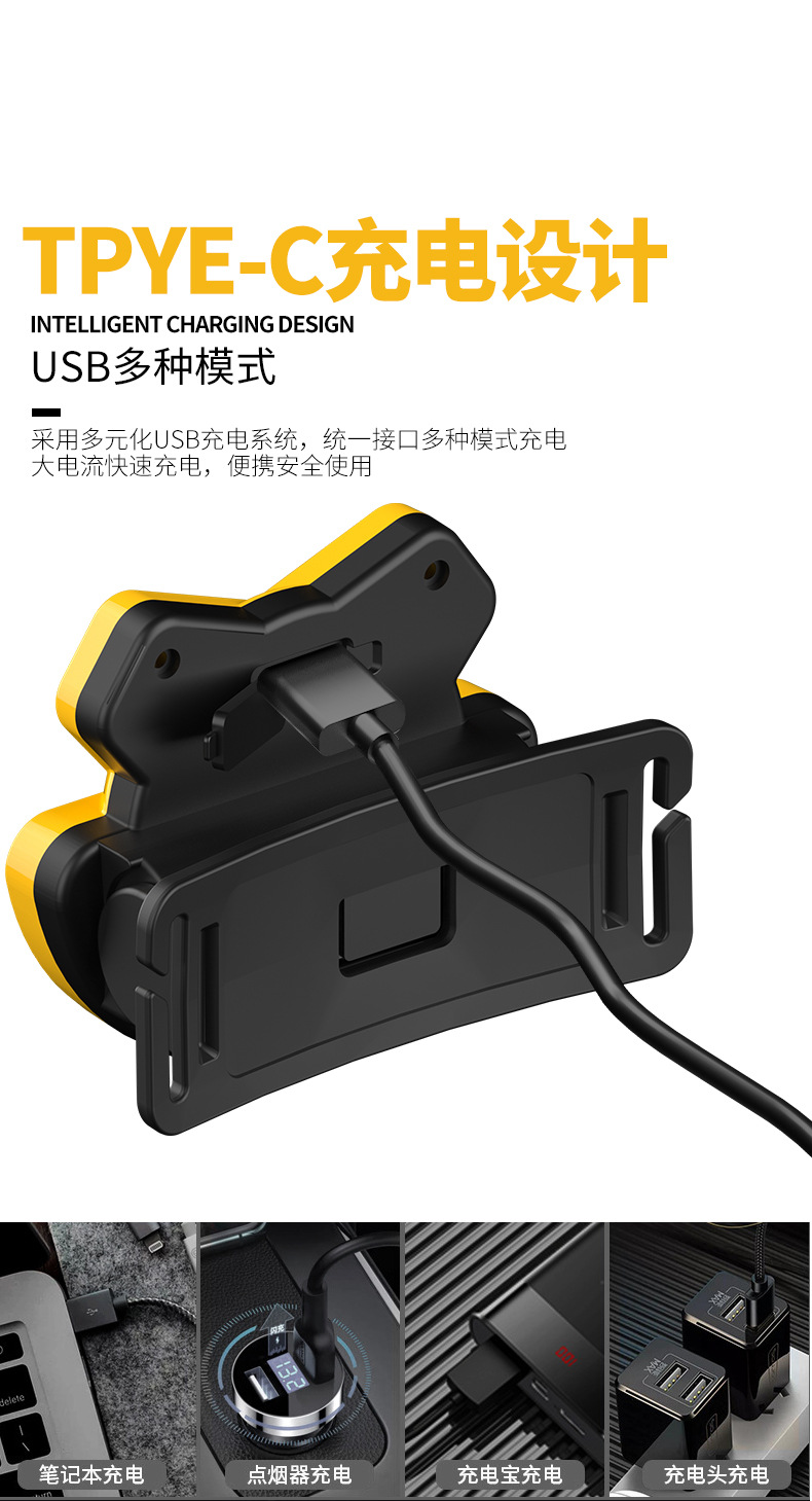 新款卡通老虎戶外折曡LED頭燈 可充電可攜式騎行強光電筒