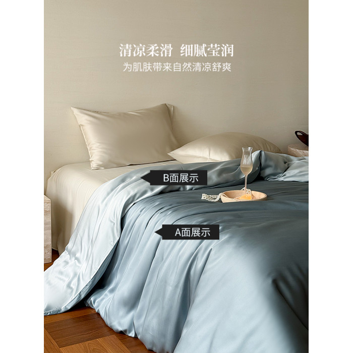 簡約60Pro蘭精天絲被套單件夏季純色冰絲涼感可裸睡床單床笠雙人
