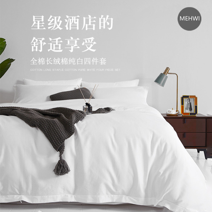 純白被套酒店專用床上用品高級輕奢民宿賓館貢緞加厚純棉白色床單