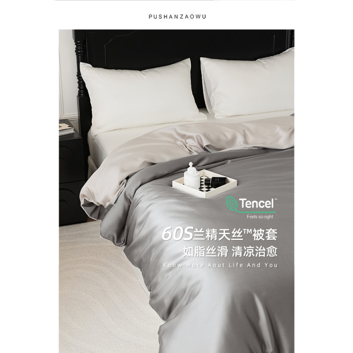 高級輕奢60支蘭精天絲被套單件簡約雙拼夏季涼感冰絲被罩絲滑裸睡