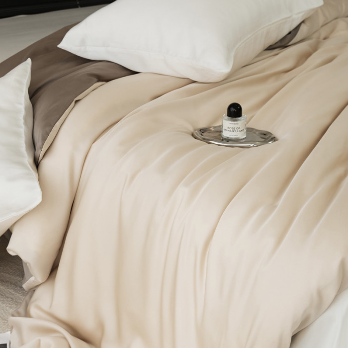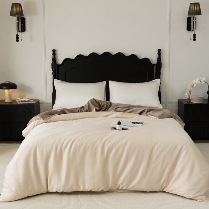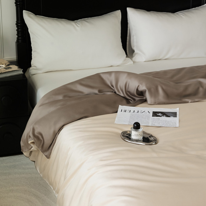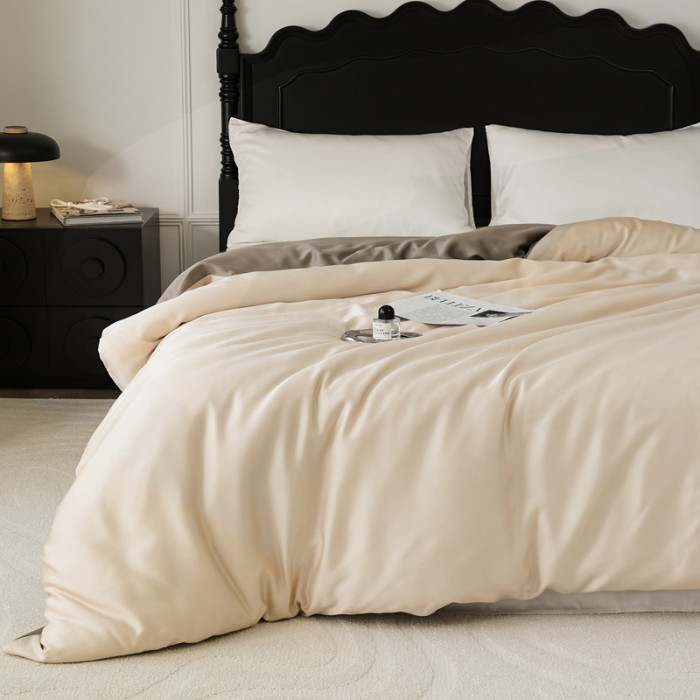 2025春夏天絲純色被套單件素色雙拼簡約被罩單人雙人涼感絲滑被套