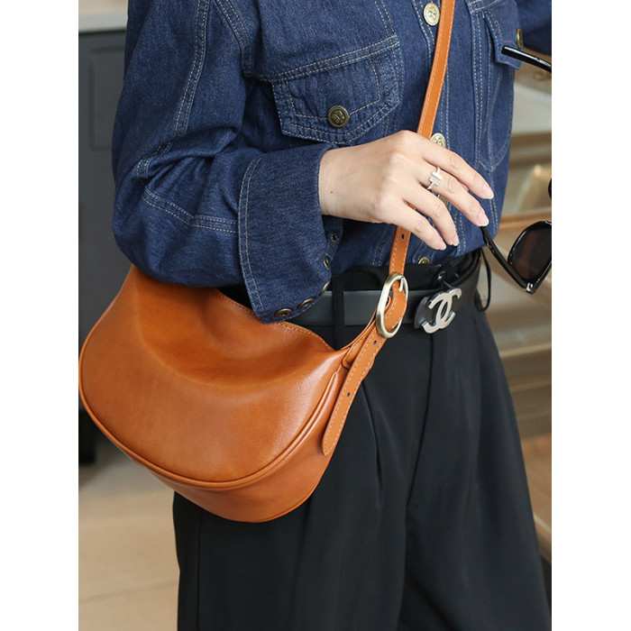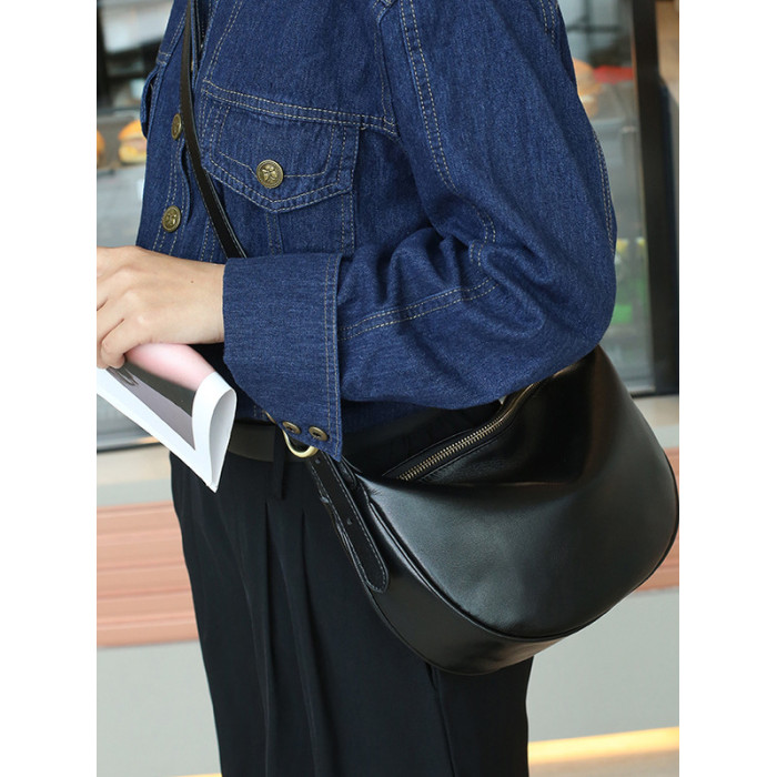 【雲朵】潮流新款單肩包真皮復古休閒女包大容量簡約設計餃子包包