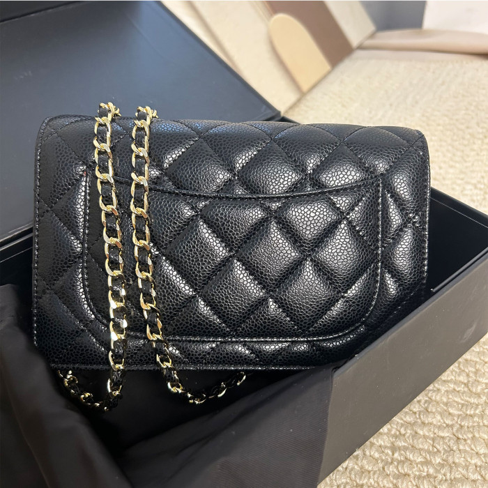 小香風菱格鏈條包魚子醬woc發財包2025新款單肩斜後背包真皮女包包
