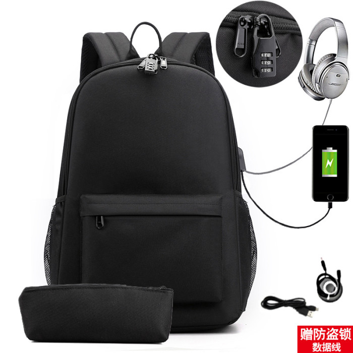 雙肩包便捷充電後背包兩件套斜背筆袋 電腦包書包