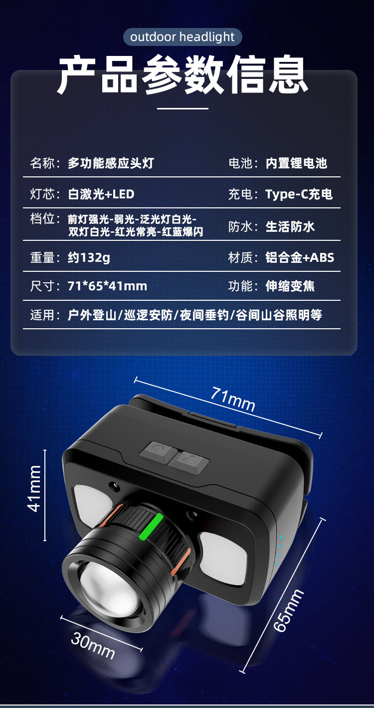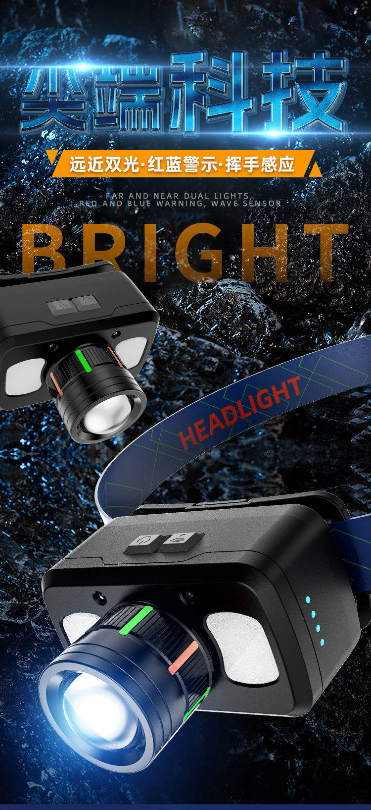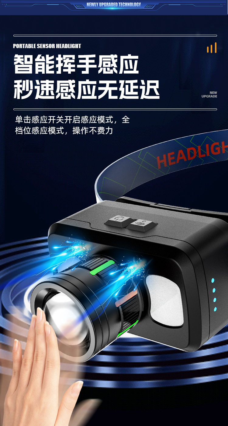 新款頭燈強光超亮充電戶外感應釣魚專用夜釣徒步登山頭戴式照明