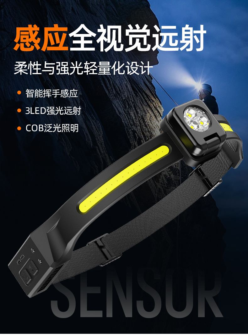 頭燈強光充電超亮頭戴式電筒超輕感應COB泛光戶外夜釣魚led照明燈