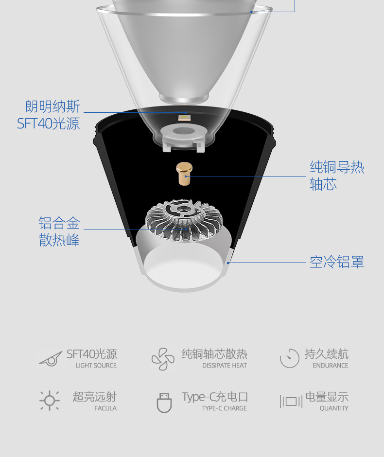 760F(白光):超聚光遠射,朗明納斯SFT40,3節21700鋰電