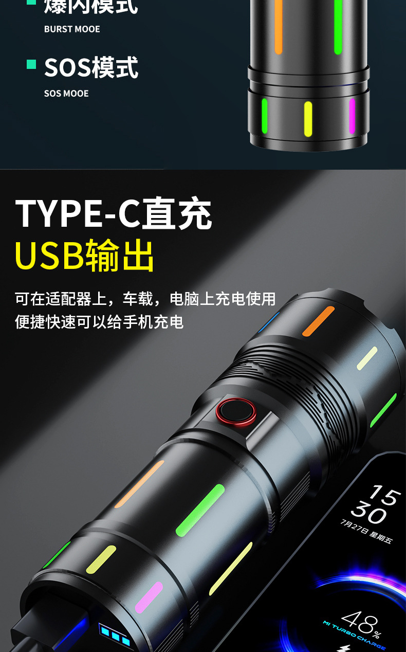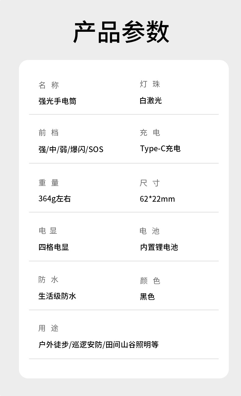 手電筒強光鐳射砲充電長續航戶外防水可攜式燈光變焦螢光鋁合金手電