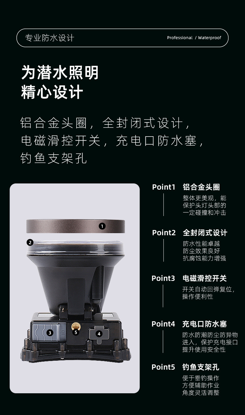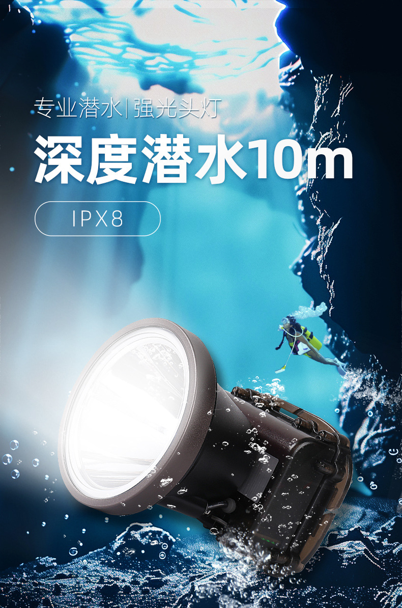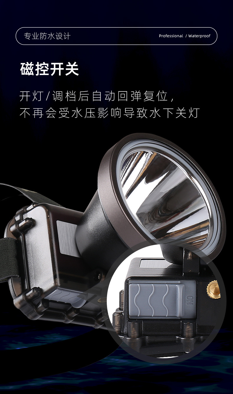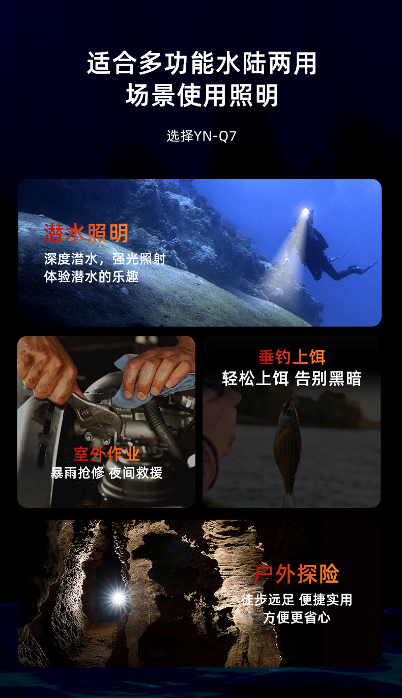 雅尼Q7潛水頭燈強光充電超亮防水超長續航頭戴式電筒戶外水下專用