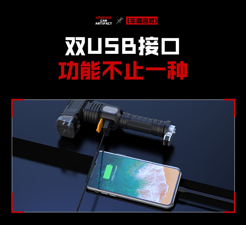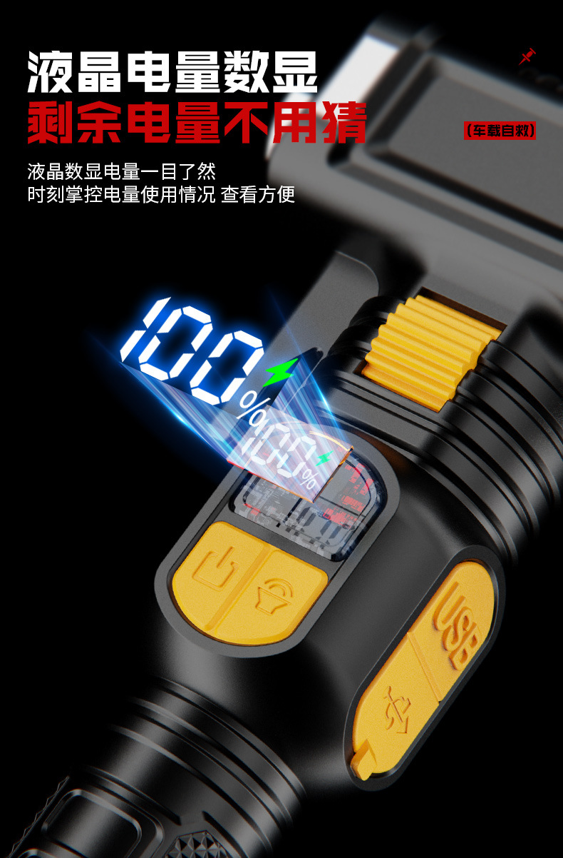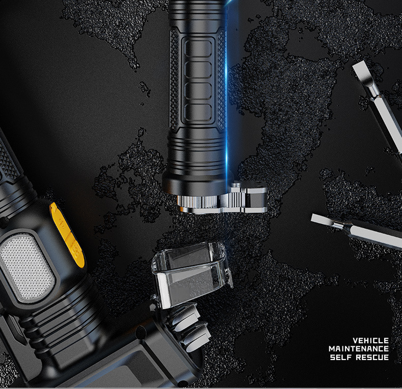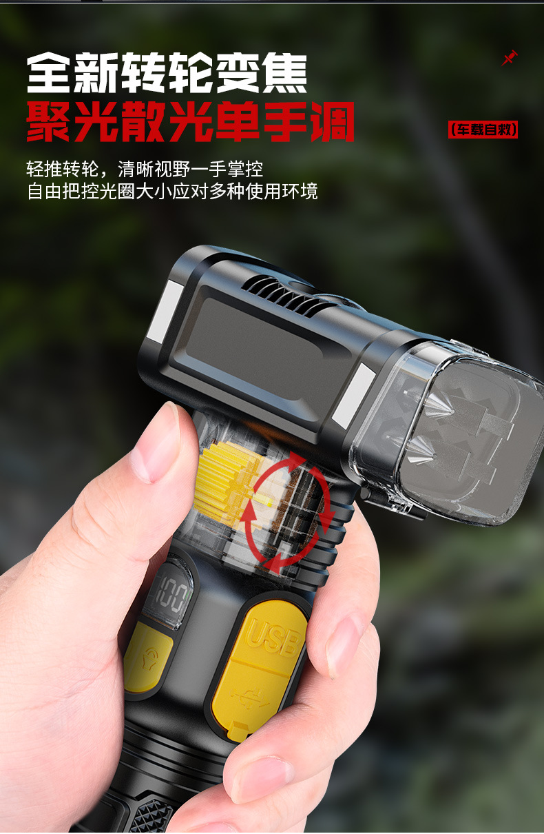 ABS手電筒 戶外家用可攜式探照USB充電cob側燈大功率強光手電筒