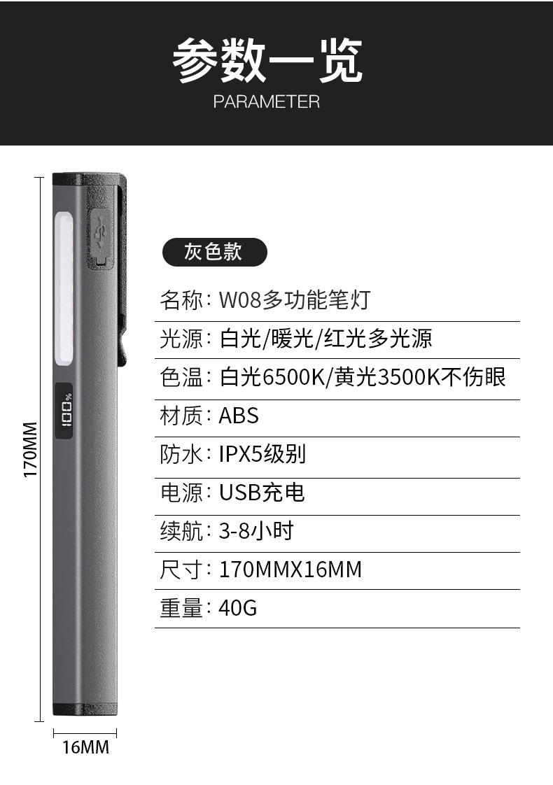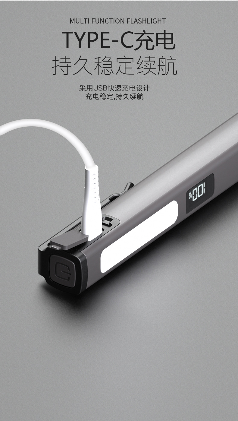 多功能工作燈COB筆夾燈 TYPEC充電汽修工作燈強磁吸附手電筒