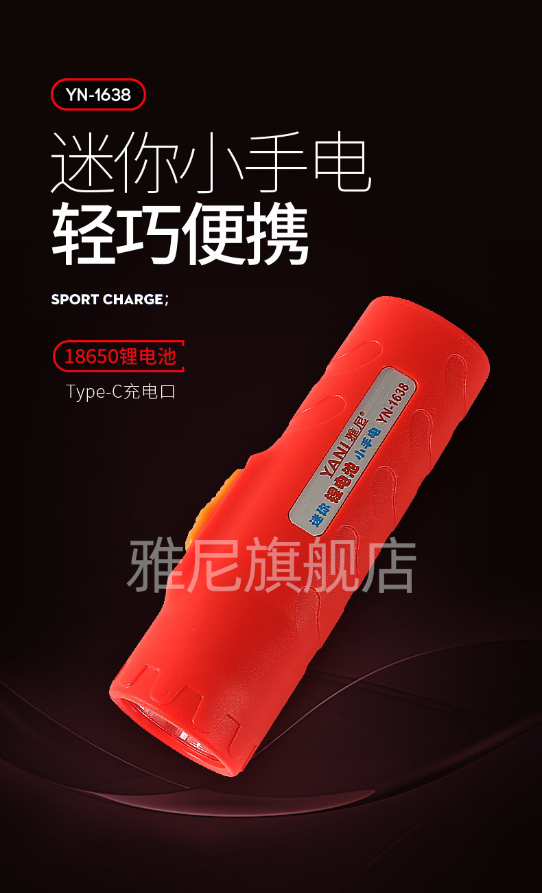 雅尼1638強光小手電筒充電家用應急備用戶外可攜式