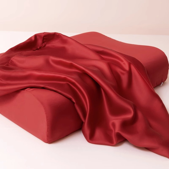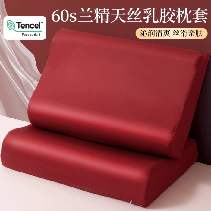 蘭精天絲乳膠枕套一衹裝大紅色記憶枕芯套成人40x60結婚冰絲整套