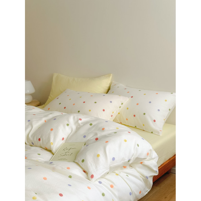 夢穀美家春夏彩色波點A類全棉雙層紗純棉被套單件宿舍單人被罩1.5