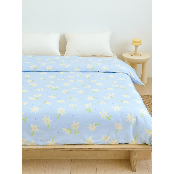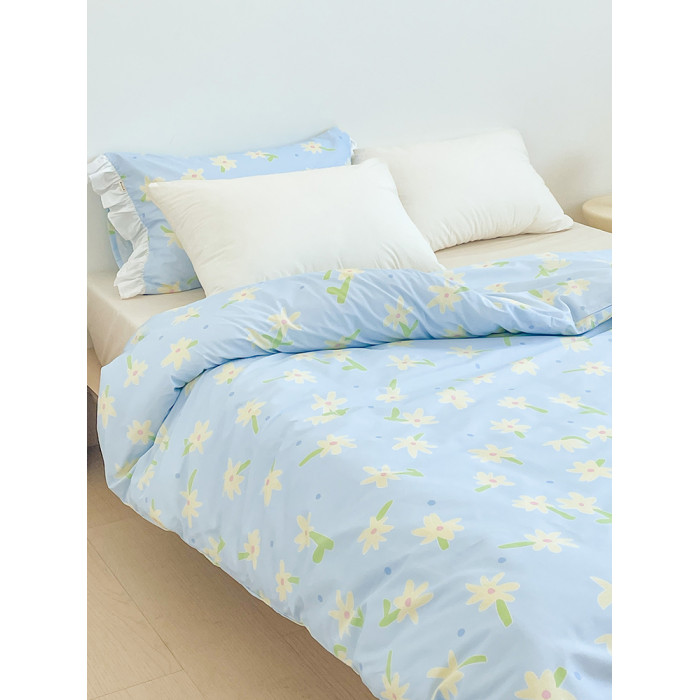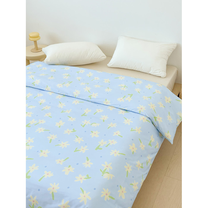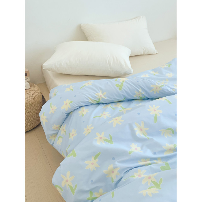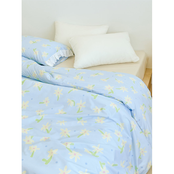 小島陽光 奶油系原創花花全棉被套四季款小清新花卉被芯罩溫柔藍