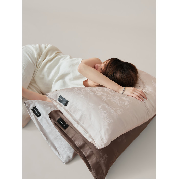 輕奢高級感提花天絲棉單人枕套一對涼感絲滑素色枕頭套48x74公分