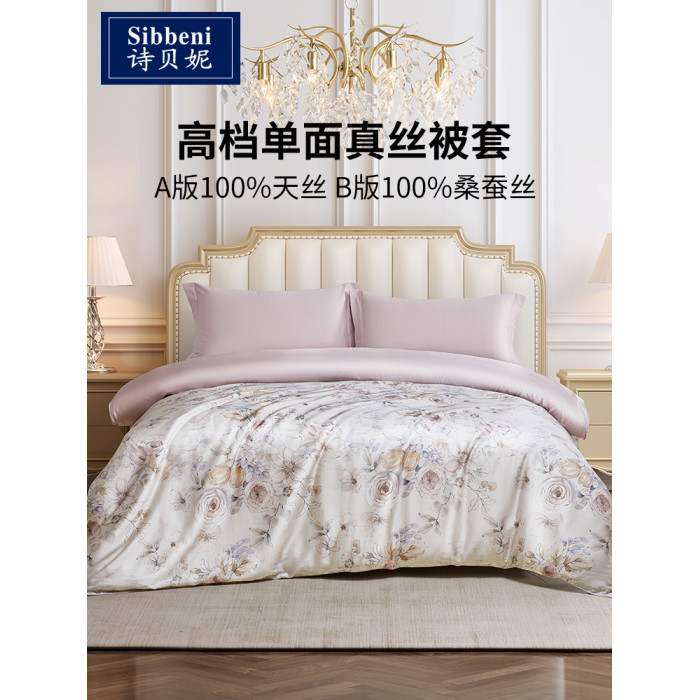 詩貝妮高級印花真絲被套單面100%桑蠶絲床上用品A版天絲被罩單件