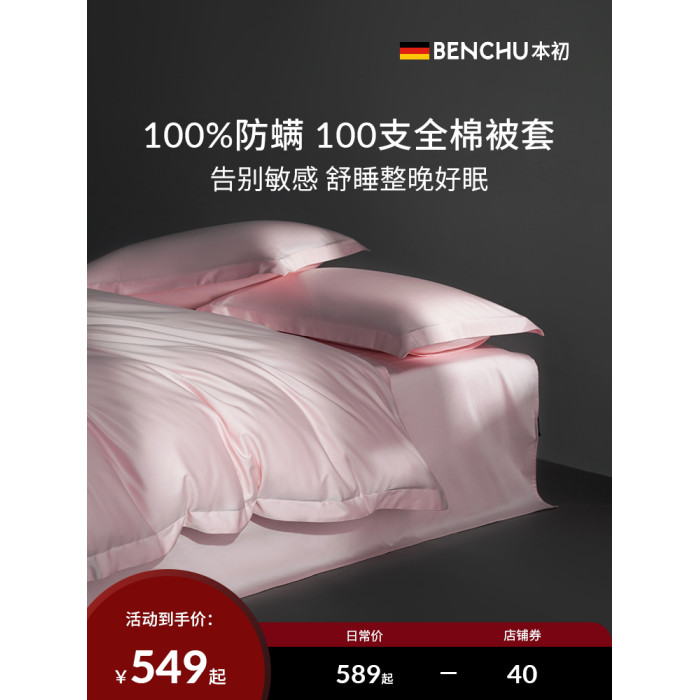 本初100s防蟎被套單件學生宿舍單人被單罩全棉純棉除蟎被罩套四季