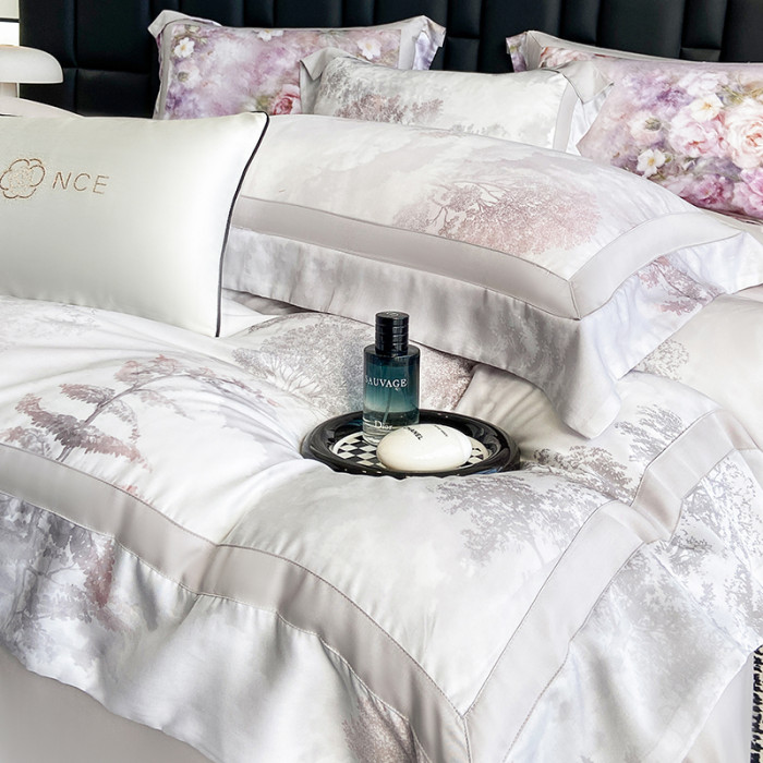 夏季A類蘭精萊賽爾天絲四件套夏天涼感冰絲被套1.8床笠款床上用品