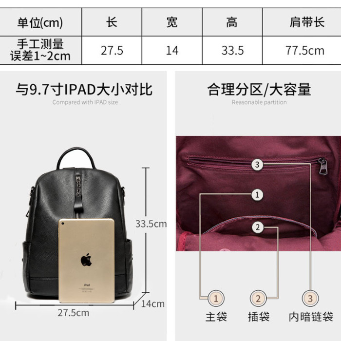 2022新款頭層牛皮真皮防盜女士後背包 通勤大容量韓版時尚雙肩包女