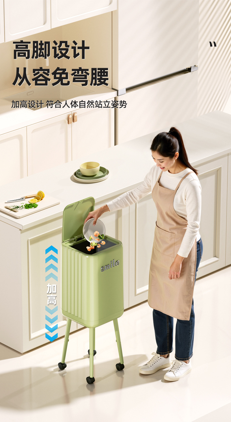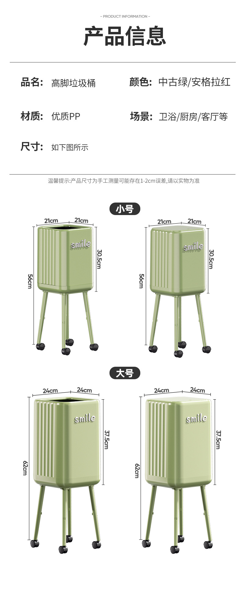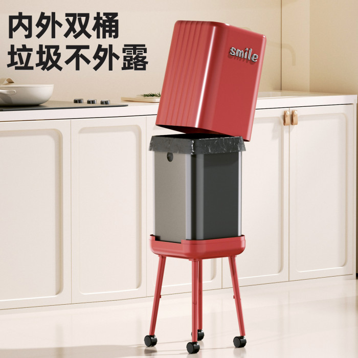 高腳垃圾桶家用帶蓋客廳臥室廚房高顔值大號大容量高級感不彎腰筒