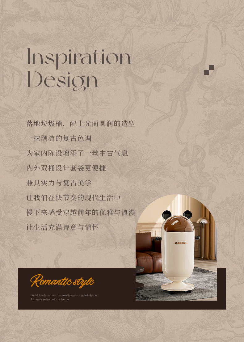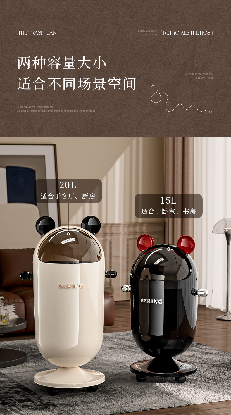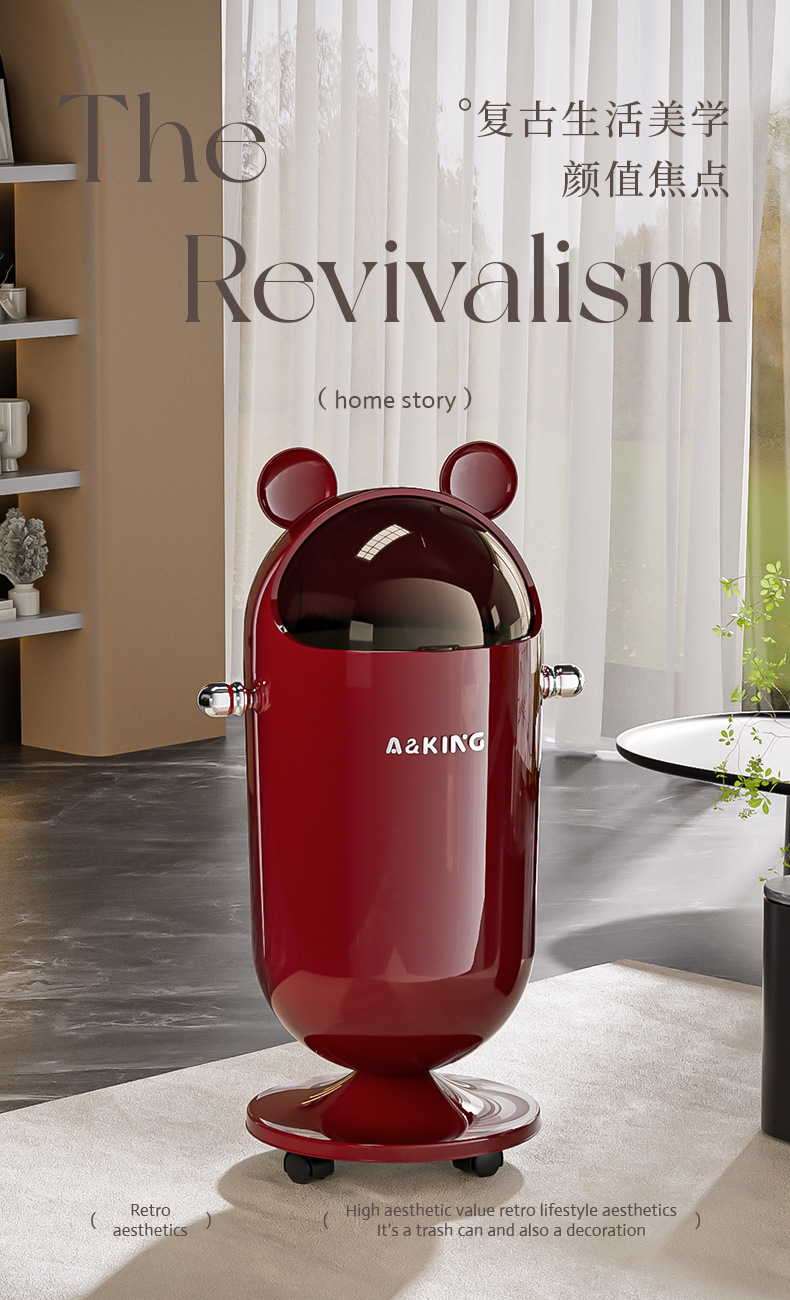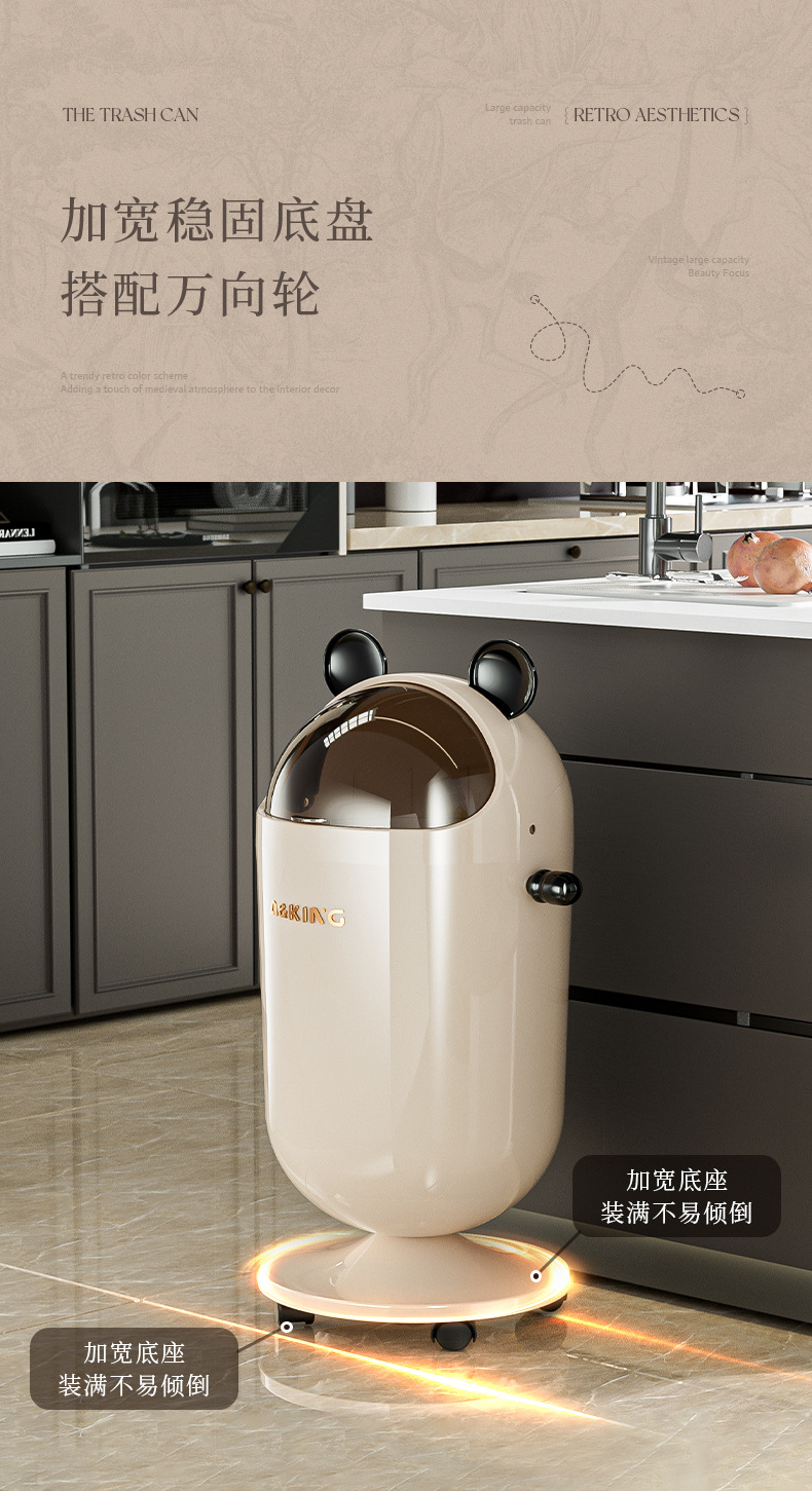 垃圾桶家用高級感帶蓋客廳廚房大號大容量可愛高顔值不彎腰高腳筒
