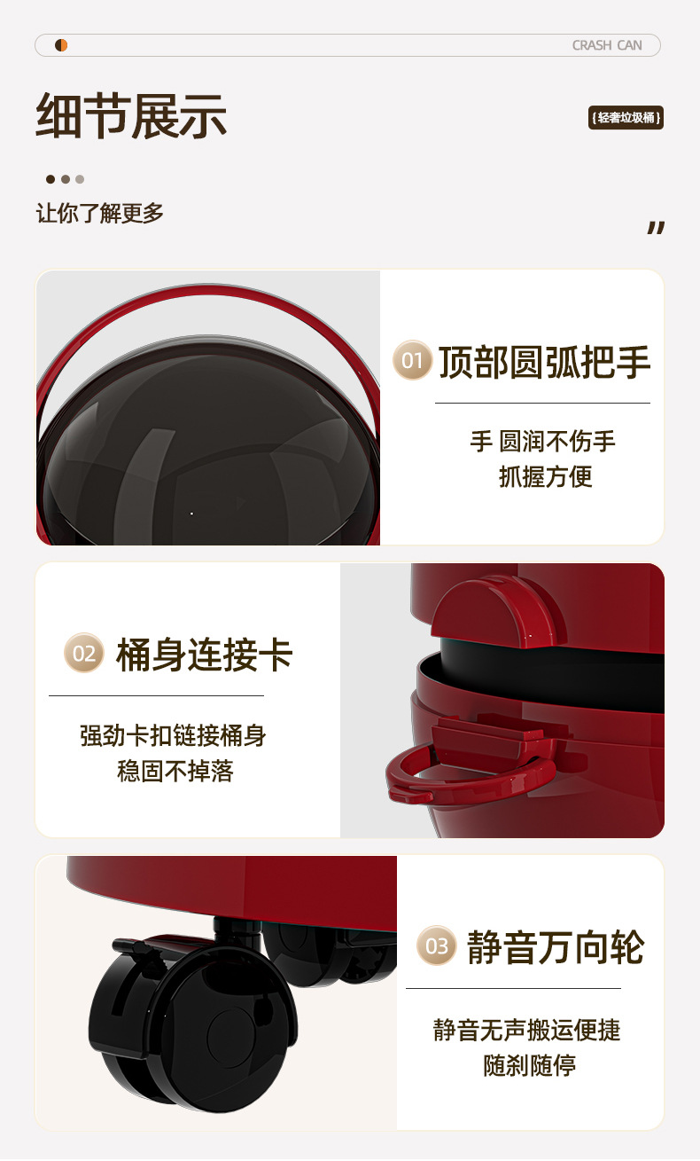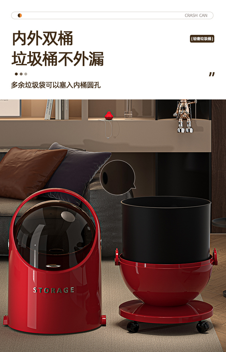 垃圾桶家用高級感帶蓋客廳臥室廚房大容量帶輪子不彎腰可移動紙簍