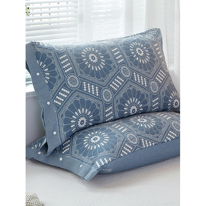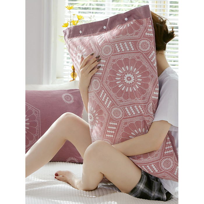 純棉紗布枕套一對裝枕巾全包式卡扣固定防滑全棉枕巾套一體不脫落