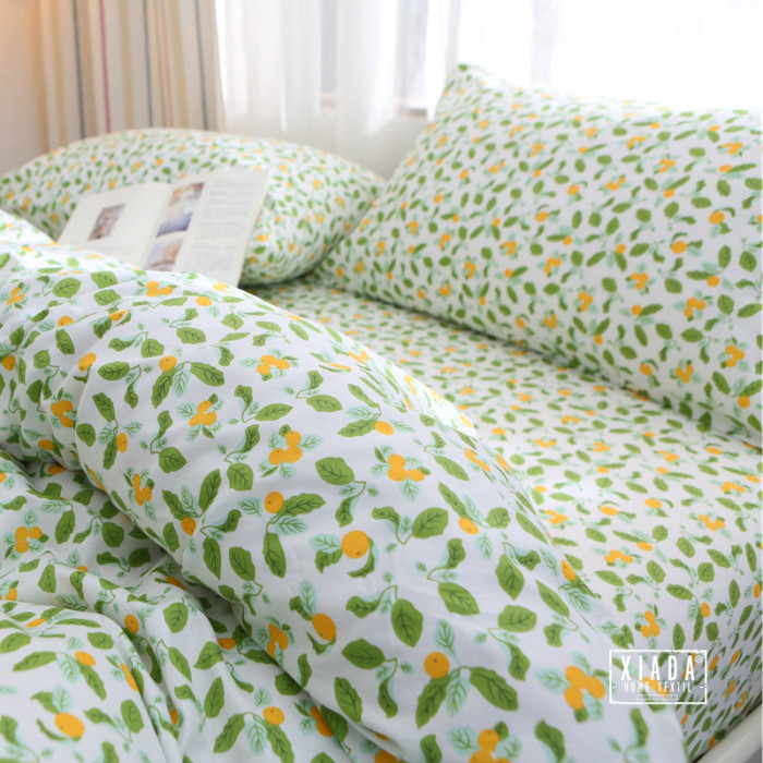 初夏味道 治瘉系小清新綠色ins純棉被套單件150x200x230全棉被罩