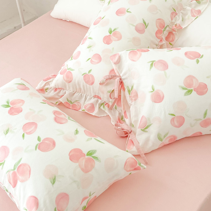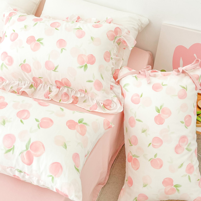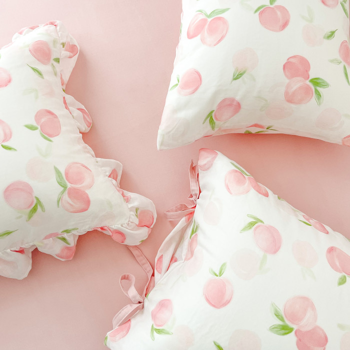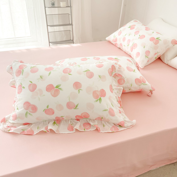 桃子心事|原創粉色小桃子全棉雙層紗枕套枕芯罩荷葉邊少女日系風