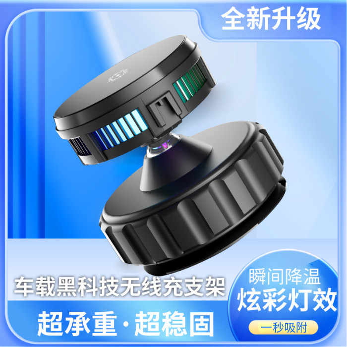 爆款車用無線充支架 360°旋轉磁吸快充手機架半導體製冷支架