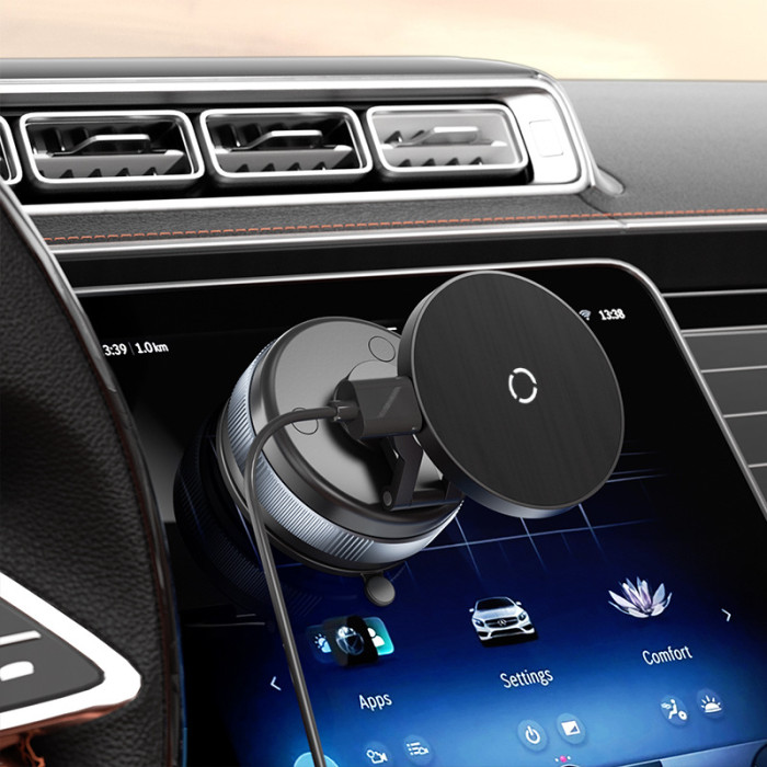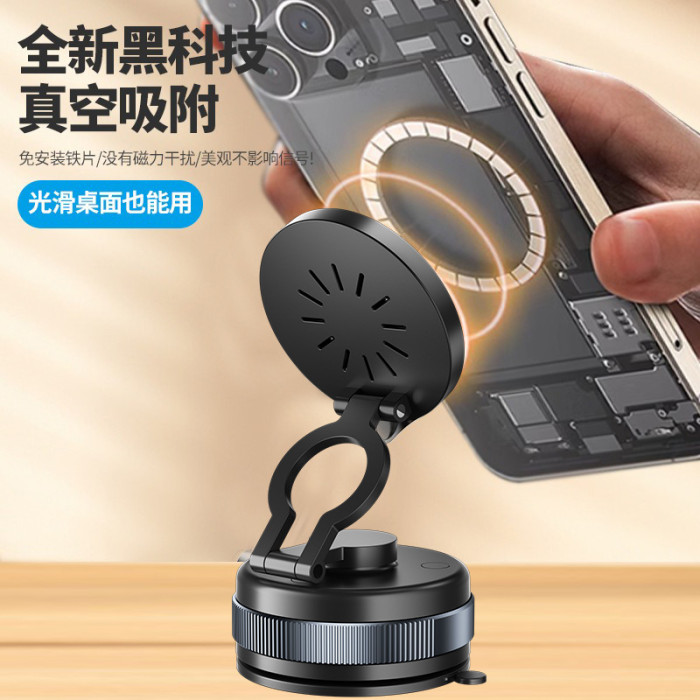 新款真空吸附強磁吸車用手機支架可折曡360度旋轉無線充電支架