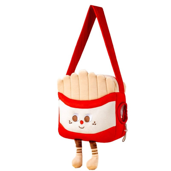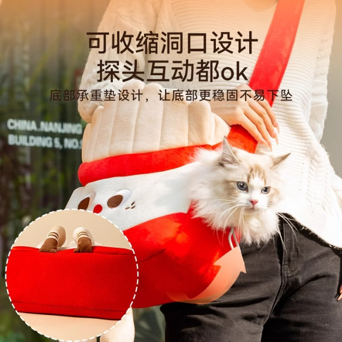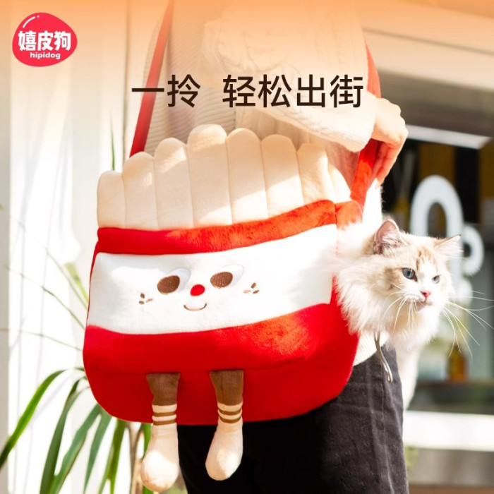 秋冬季寵物外包貓咪斜後背包保暖加厚薯條漢堡探頭貓包狗狗後背包用品