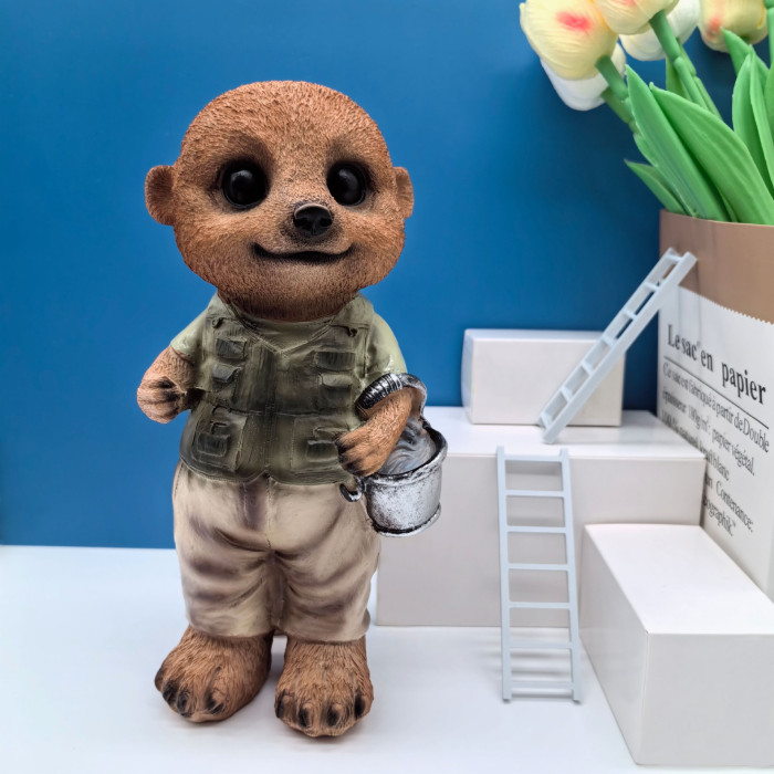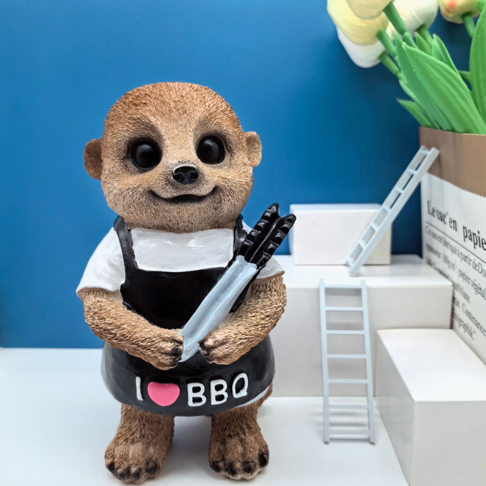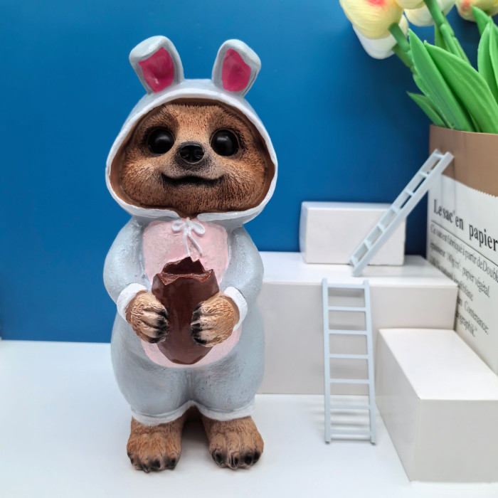 新品可愛兔耳朵貓鼬樹脂卡通擺件辦公室桌面擺件家居工藝品
