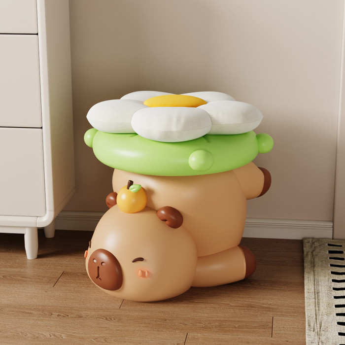 卡皮巴拉凳子擺件-坐著-花坐墊