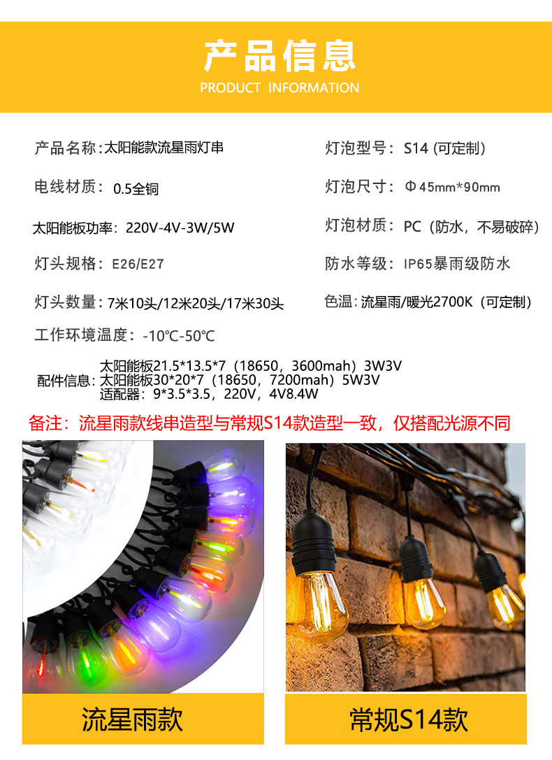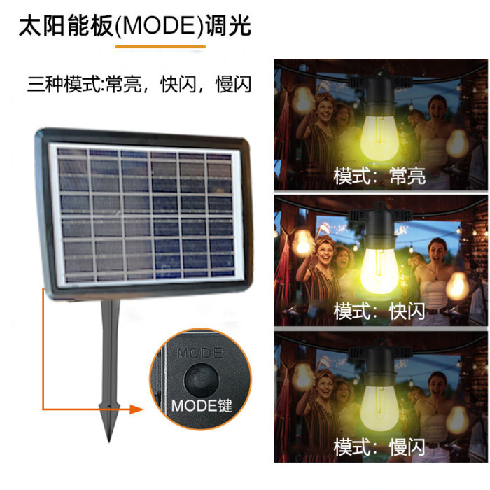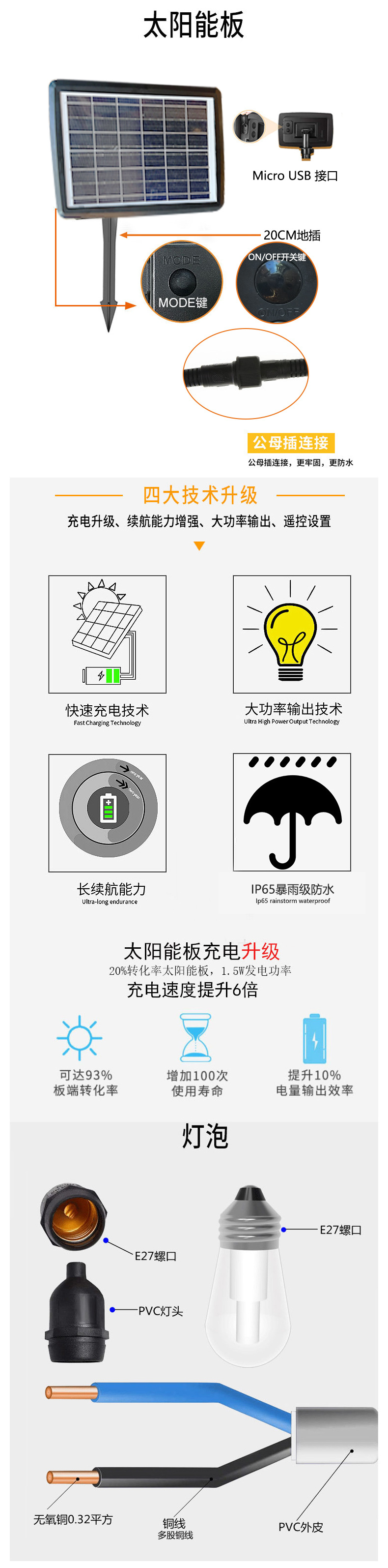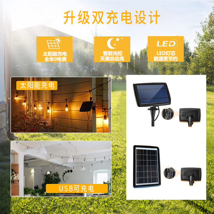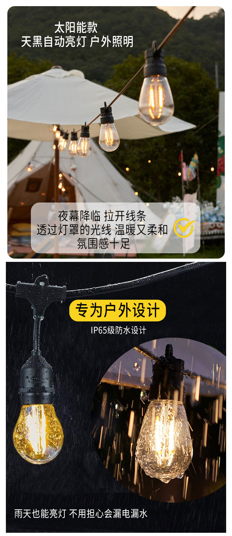 戶外太陽能燈串IP65防水光控聚會露營氛圍燈串農莊花園庭院線串燈