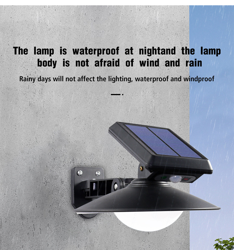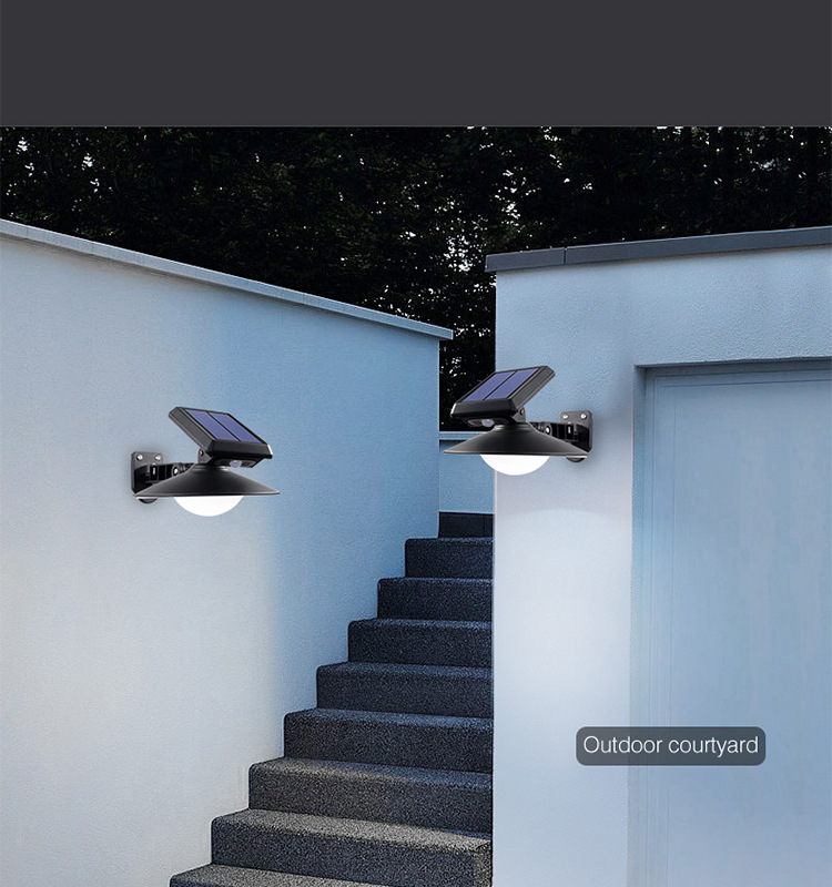 新款太陽能戶外感應燈LED圓形壁燈戶外防水景觀燈花園路燈