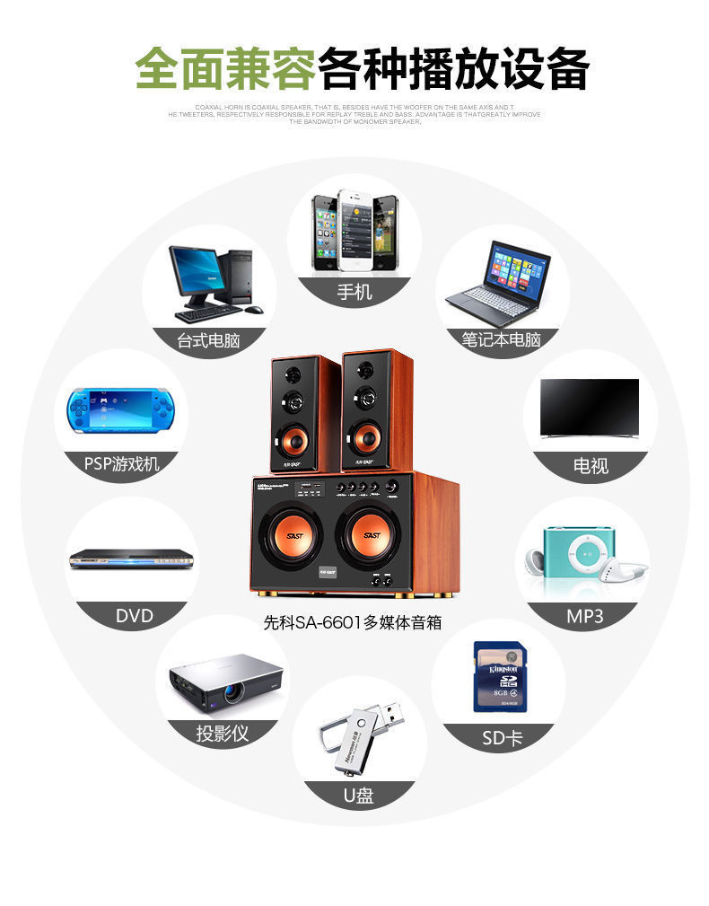 先科-6601電腦音箱家庭影院K歌桌上型KTV超重低音砲音響KTV杜比環繞